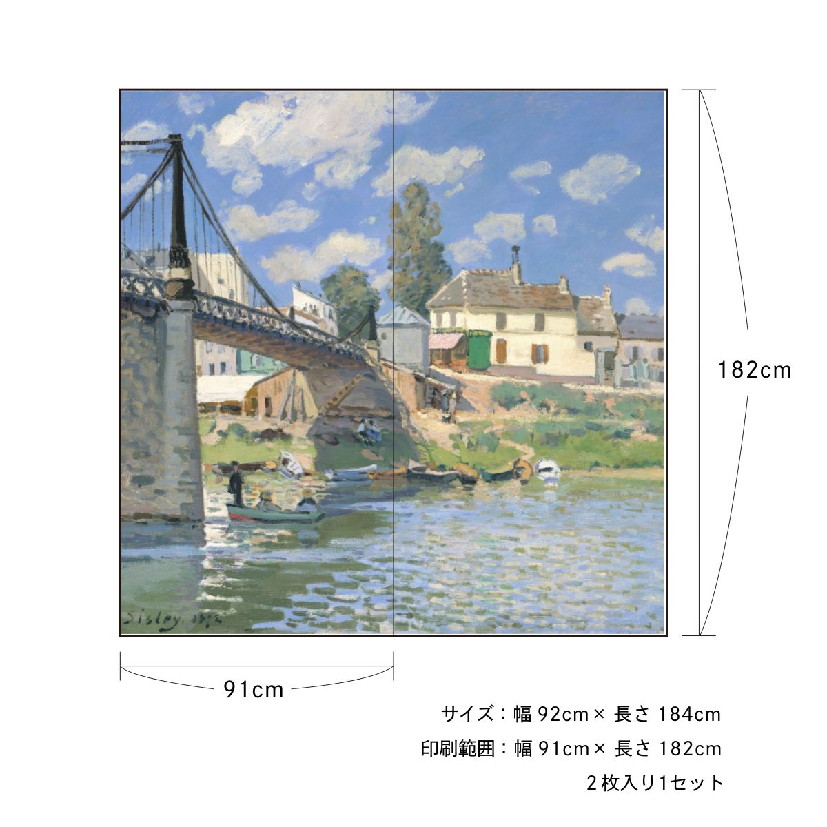 World Famous Paintings Shoji Paper Sisley Bridge of Villeneuve-la-Garenne Set of 2 Water Paste Type Width 91cm x Length 182cm Shoji Paper Asahipen WWA-048S