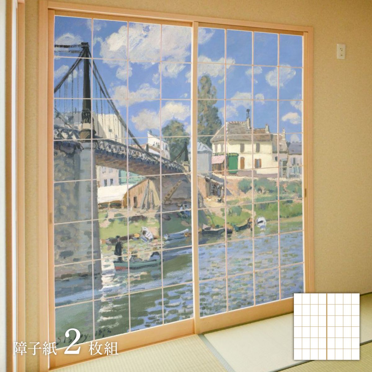 Alfred Sisley's works, which consistently depict textbook-style landscape paintings in the typical Impressionist style, are now available on shoji paper. Replacement of shoji (glue type)