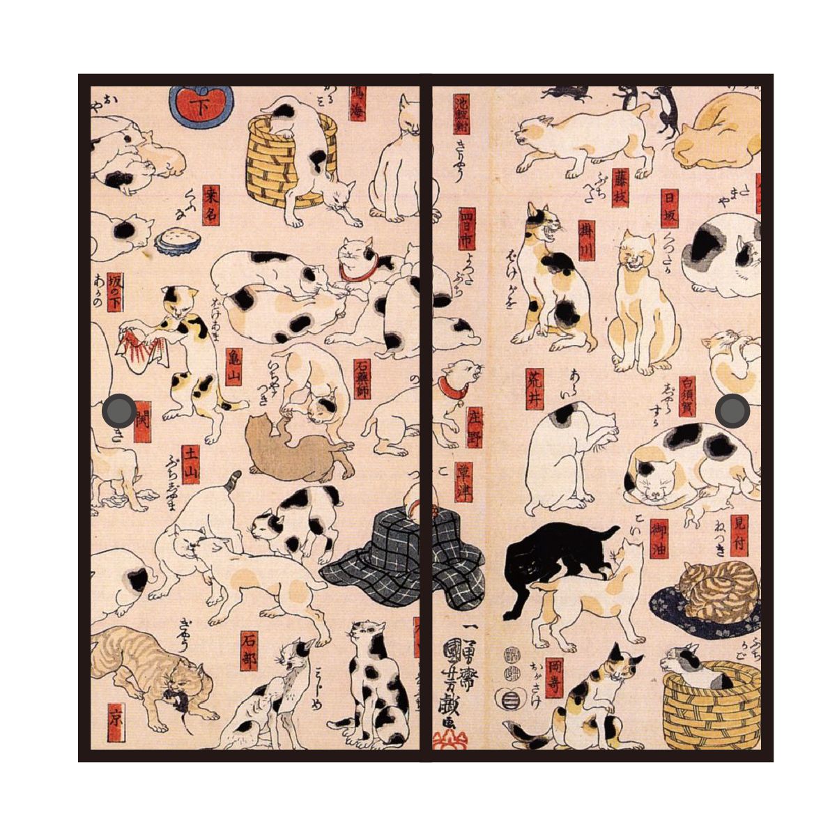 Ukiyo-e Fusuma Paper Utagawa Kuniyoshi Somama Jiguchi Nekokai Ho 53 Hiki Part 2 2 Sheets 1 Set Water Paste Type Width 91cm x Length 182cm Fusuma Paper Cat Interior Cat Pattern Cat Goods Asahipen JUK_002F