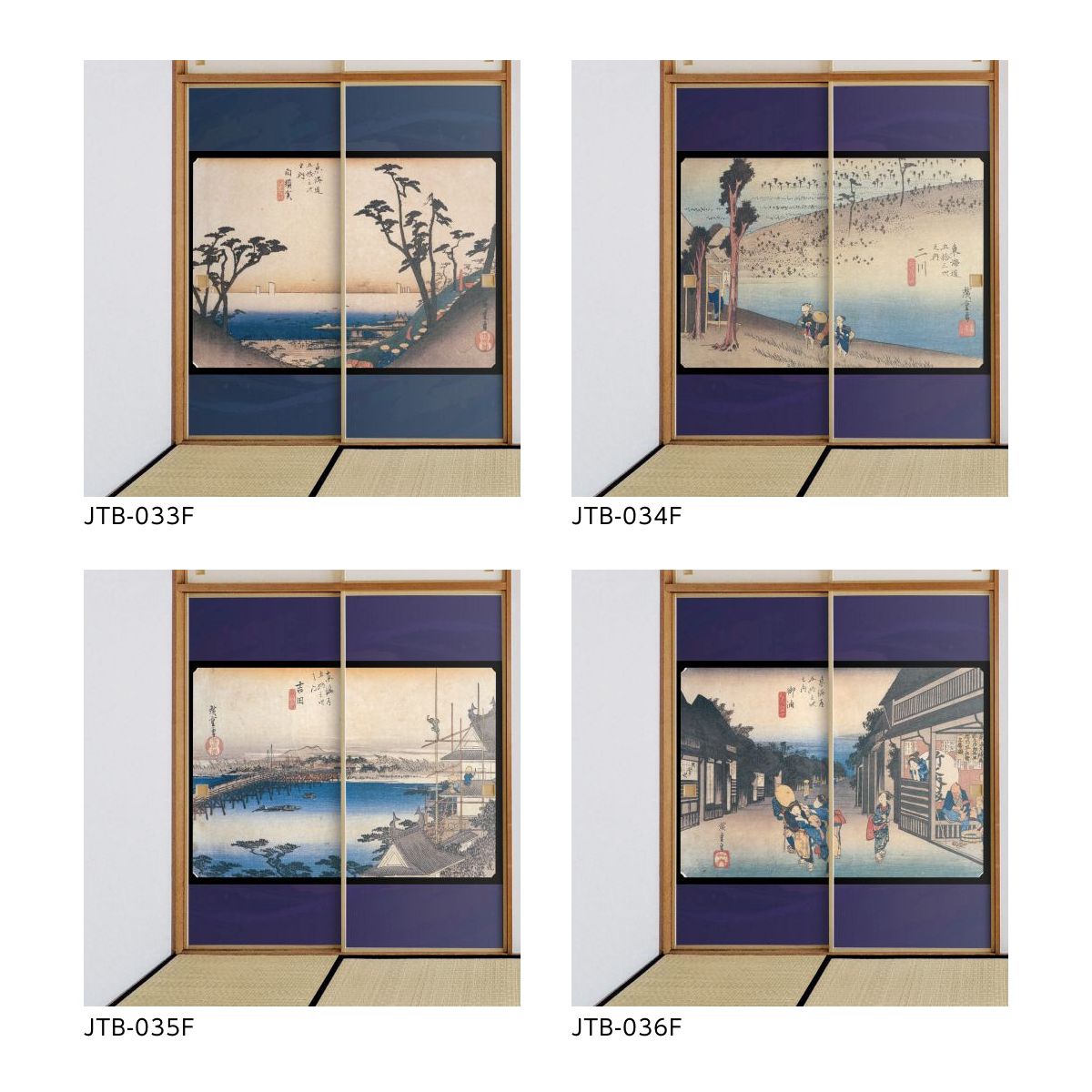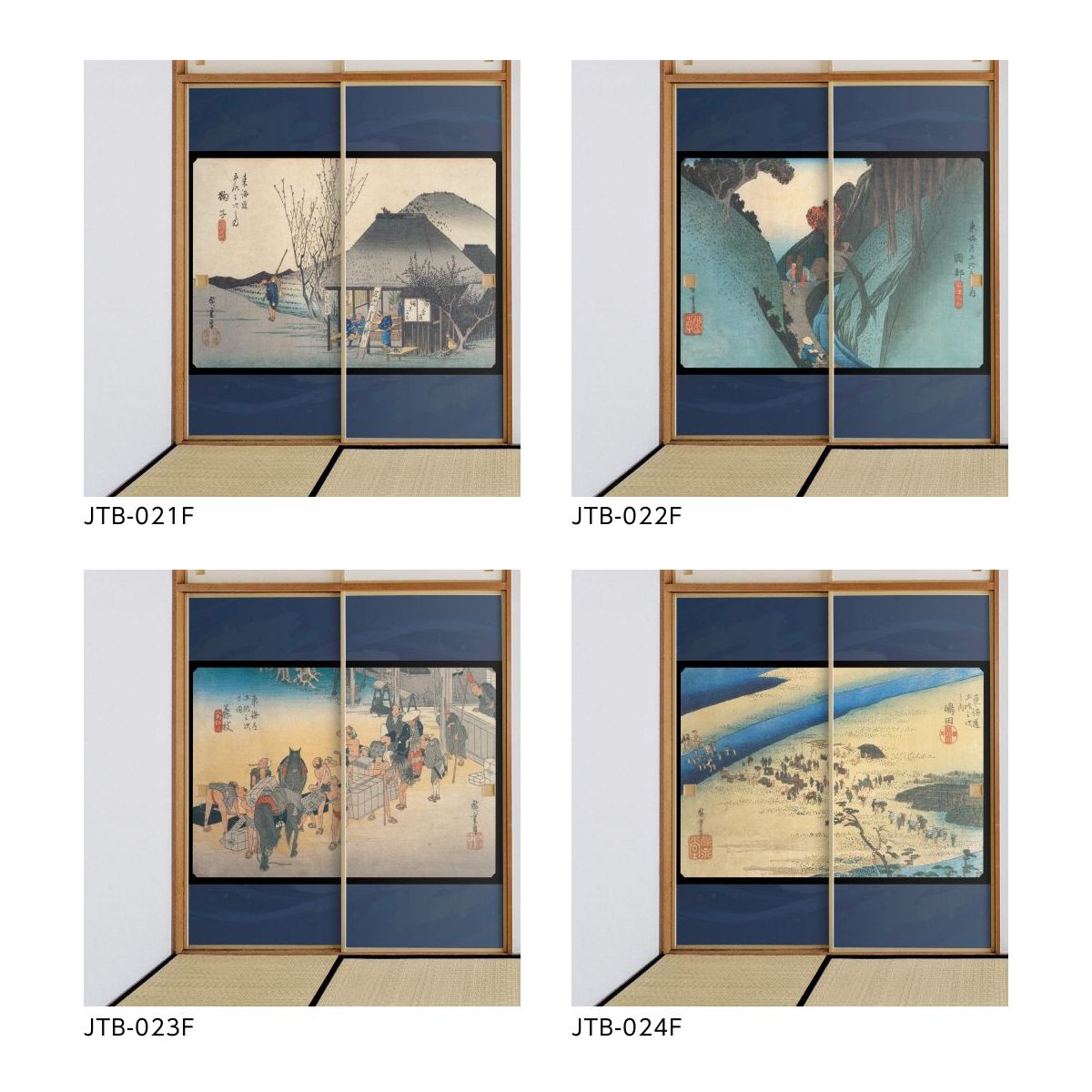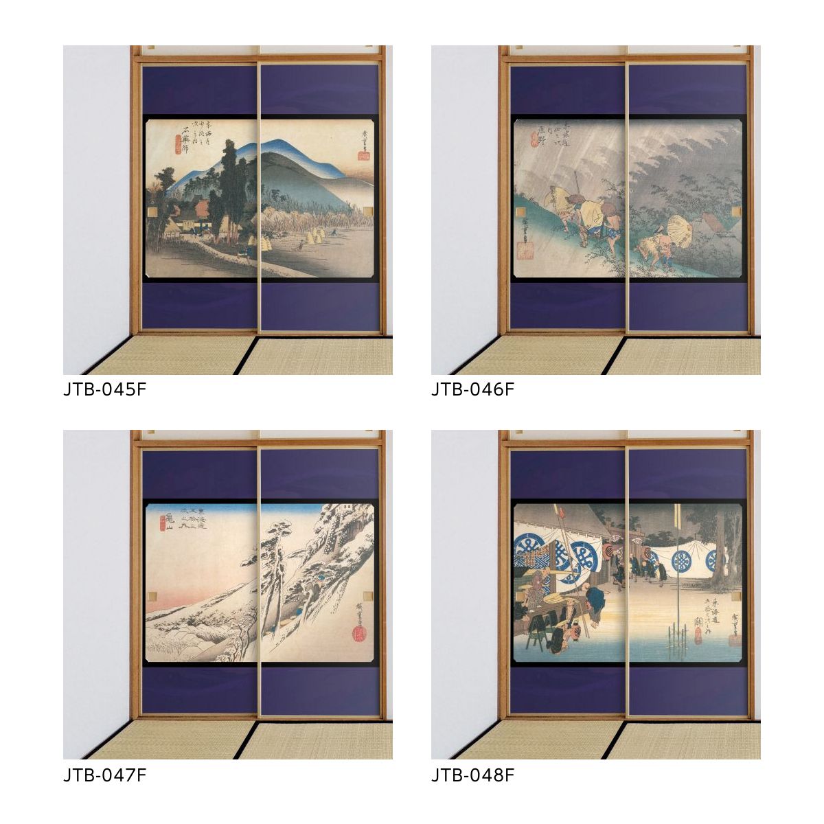 ●Utagawa Hiroshige's ukiyo-e landscape masterpiece "Fifty-three Stations of the Tokaido" on shoji paper.
