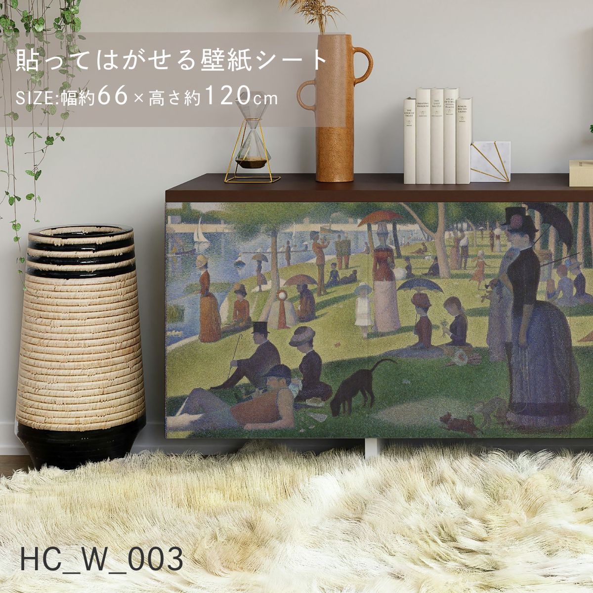 貼ってはがせる壁紙シート アートシリーズ 西洋の巨匠たち 世界の名画 HC_W_003 スーラ グランド・ジャット島の日曜日の午後 シールタイプ 幅約120cm×高さ約66cm 1枚入り アサヒペン