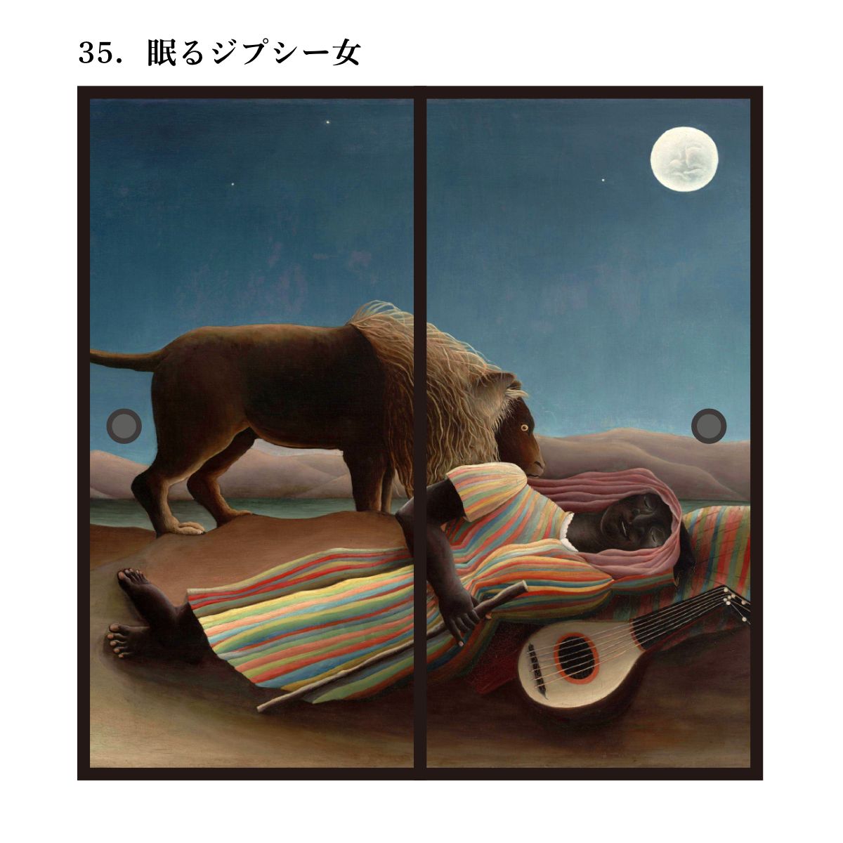 世界の名画 ふすま紙 ルソー 眠るジプシー女 2枚1組 水で貼るタイプ 幅91cm×長さ182cm 襖紙 アサヒペン WWA-035F